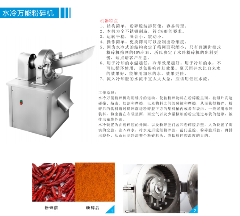 WN-200水冷萬(wàn)能粉碎機(jī)附帶水冷裝置,結(jié)構(gòu)簡(jiǎn)單,容易清理,不銹鋼材質(zhì)